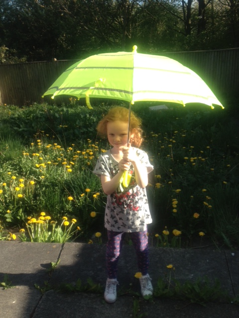 My five year old daughter Jordanna was so excited about this umbrella, she loved the bright yellow colours and how it glowed up. She could not wait to try it out, Only problem was that for the first time ever this year the UK actually had a very warm sunny few days (how typical!). Well this didn’t stop my little princess modelling it and seeing how it worked and looked.