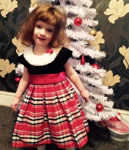 What a great photo, I love the white Christmas Tree, and that’s a very pretty dress too!