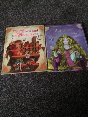 The Elves & the shoemaker and Izebellas favourite Rapunzel. Both of these classic tales are retold in beautiful modern day books by John Cech. The art and illustrations throughout both books is pretty bold and beautiful and is the work of Fiona Samson.