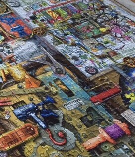 The Inventors cupboard is a 1000 piece puzzle from Ravensburger. The artist is Colin Thompson from London.