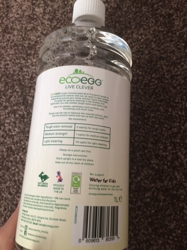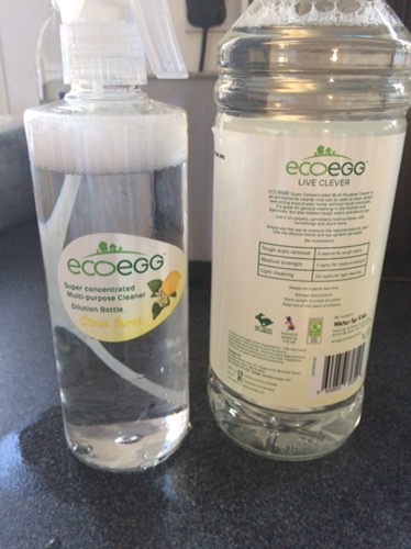 It’s a big litre bottle which needs mixing and diluting, hence the other spray bottle. This concentrated mixture gives enough to make up to 80 spray bottles so it will certainly last me a long time. The back of the concentrate bottle shows how to dilute and it’s easily done with one or two capfuls of concentrate and filled with water.