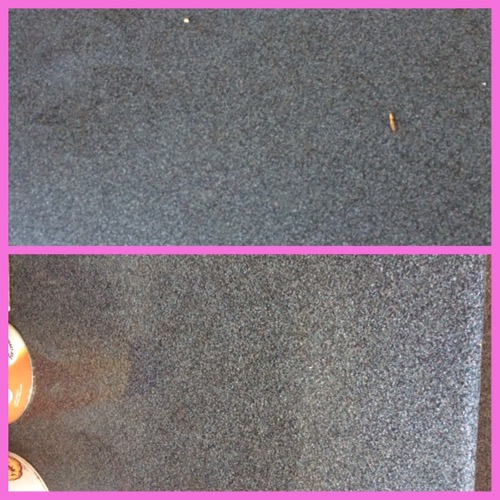 The spray bottle is really easy to use and the nozzle can be locked when not in use. The spray comes out moderately with an ever so slight bit of foam. It can be used on any surface in any room, even glass. I found it especially good on kitchen sides, bathroom and white painted doors which get full of grubby hand marks. Here is a quick before and after picture of my previously messy kitchen worktop.