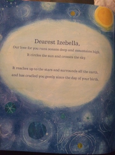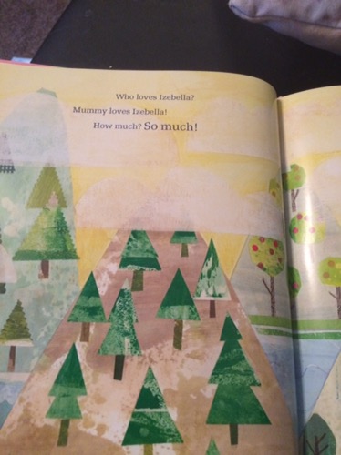 The pages tell the story of the many people who love Izebella, so mummy, daddy, brother, sister etc. You can choose up to 6 people to include when making the book and each page gives a different person who loves the names child.